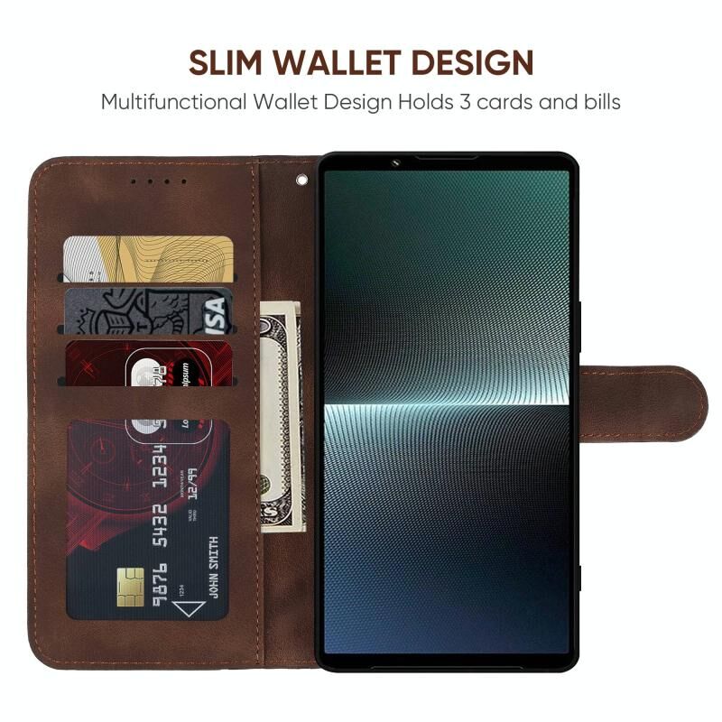 Για το Sony Xperia 1 V 2023 Skin Feel Γεωμετρικές γραμμές δερμάτινη θήκη τηλεφώνου (καφέ)