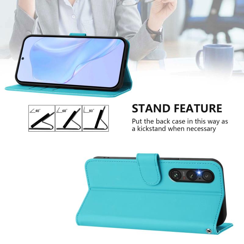 For Sony Xperia 1 V 2023 Skin Feel Solid Color Leather Phone Case with Lanyard(Lake Blue)