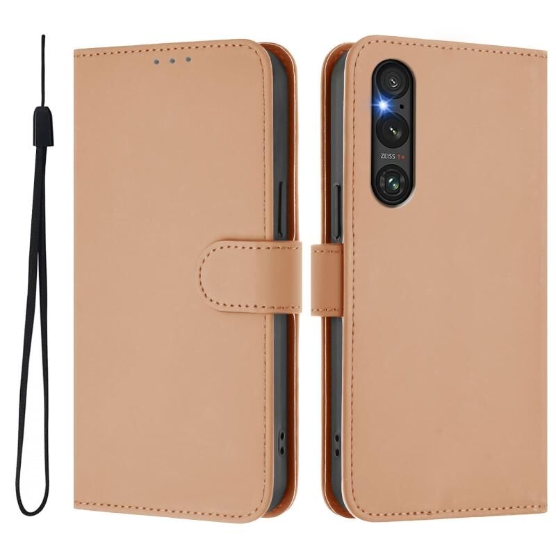 For Sony Xperia 1 V 2023 Skin Feel Solid Color Leather Phone Case with Lanyard(Nude)