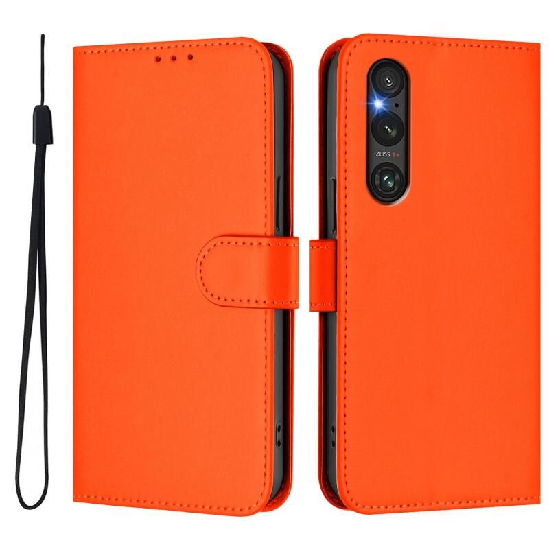 For Sony Xperia 1 V 2023 Skin Feel Solid Color Leather Phone Case with Lanyard(Orange)