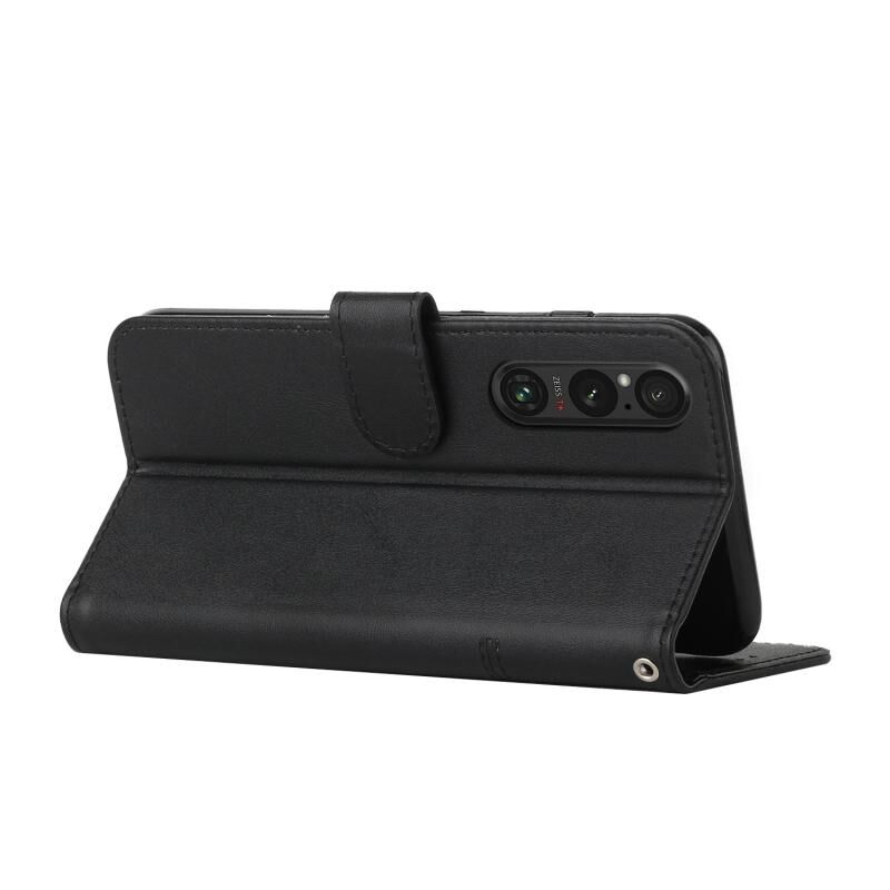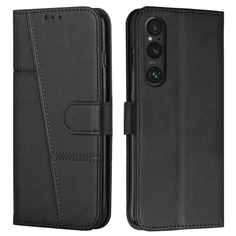 Για το Sony Xperia 1 V 2023 ραφή μοσχάρι υφή πόρπη δερμάτινη θήκη τηλεφώνου (μαύρο)
