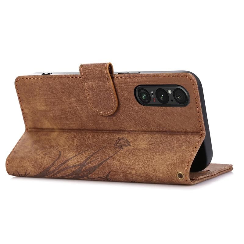 Θήκη τηλεφώνου από δέρμα με ανάγλυφο σχέδιο πεταλούδας ορχιδέας για Sony Xperia 1 V 5G 2023 (Μαύρο)