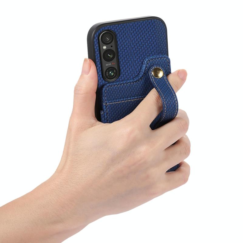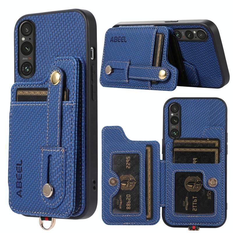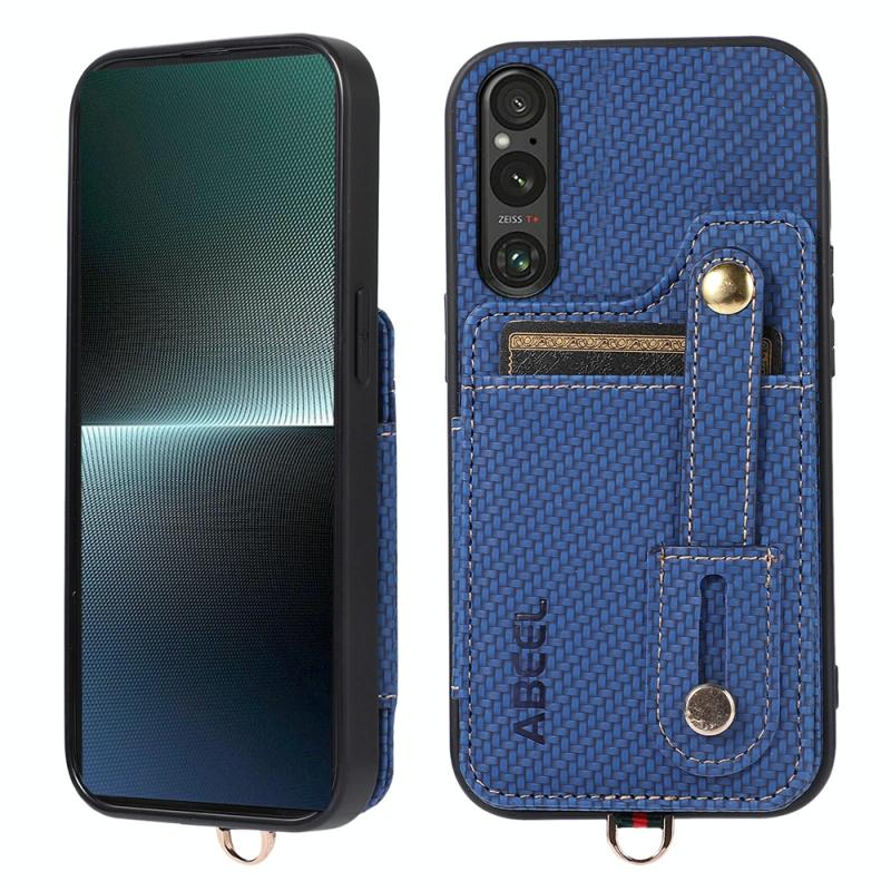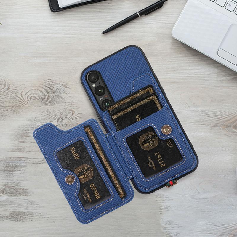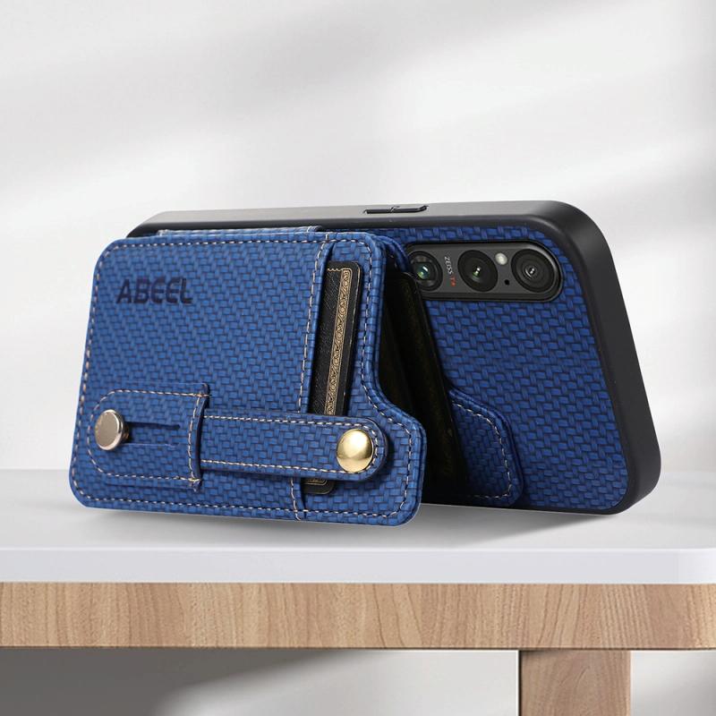 For Sony Xperia 1 V ABEEL Carbon Fiber RFID Card Holder Phone Case(Blue)