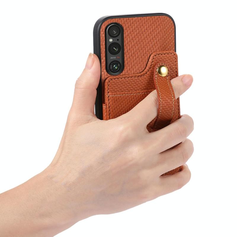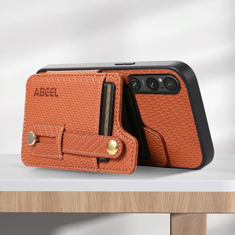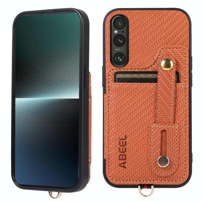 For Sony Xperia 1 V ABEEL Carbon Fiber RFID Card Holder Phone Case(Brown)