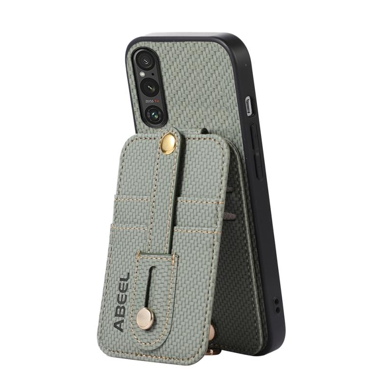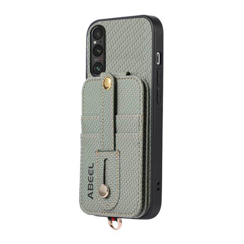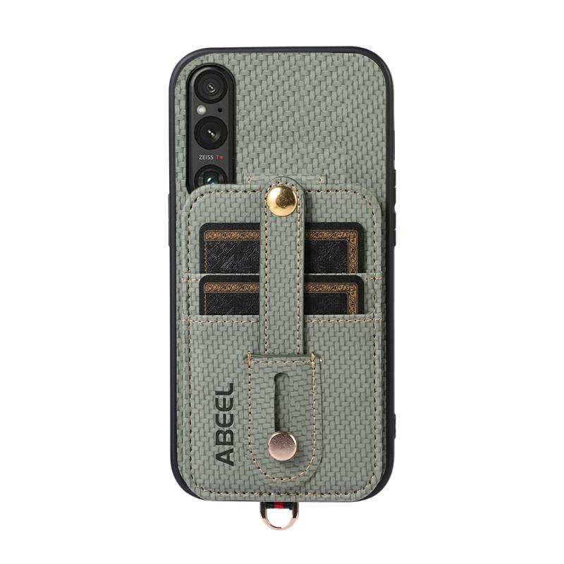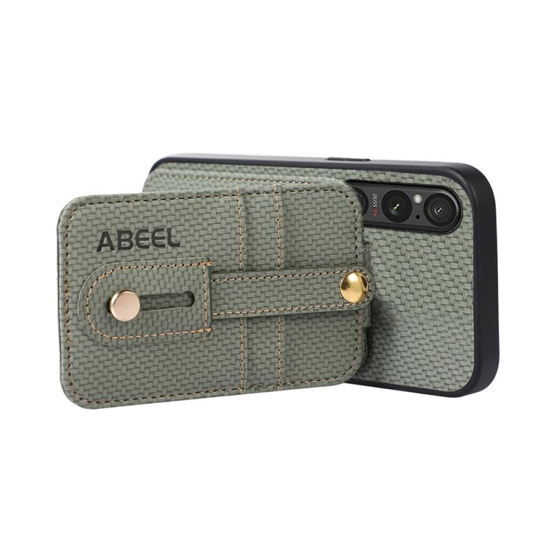 For Sony Xperia 1 V ABEEL Carbon Fiber RFID Card Holder Phone Case(Green)