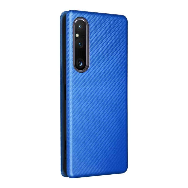 Θήκη τηλεφώνου δερμάτινη με υφή ανθρακονημάτων για Sony Xperia 1 V (Καφέ)