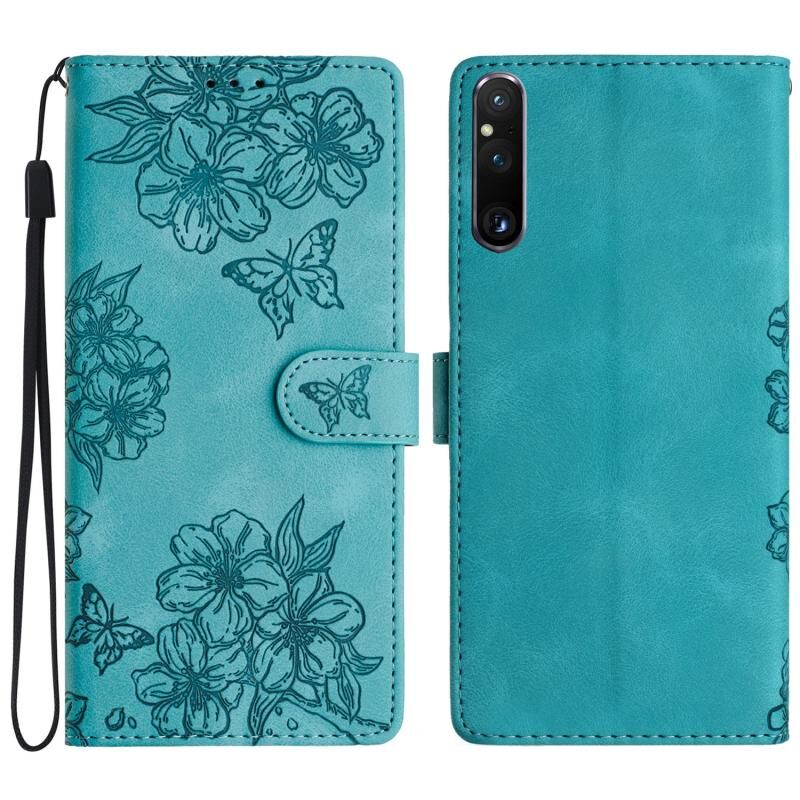 Θήκη τηλεφώνου για Sony Xperia 1 V Cherry Blossom Butterfly Skin Feel Embossed PU (Μωβ)