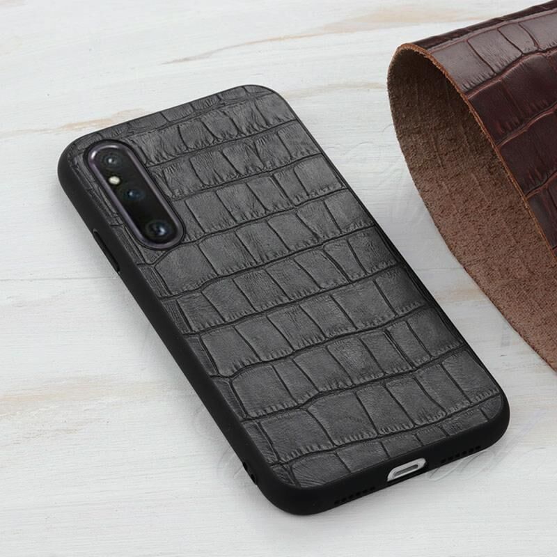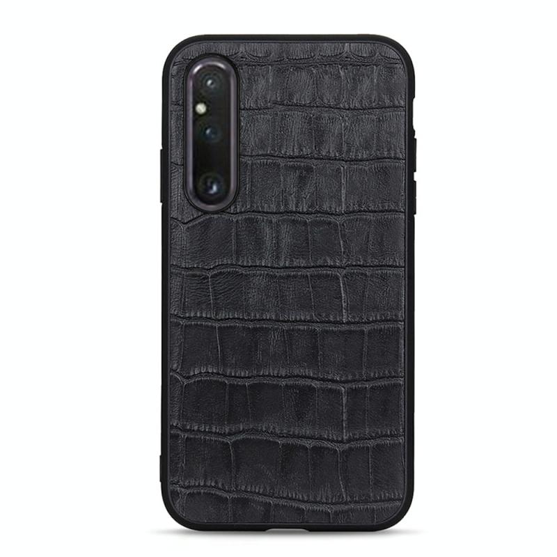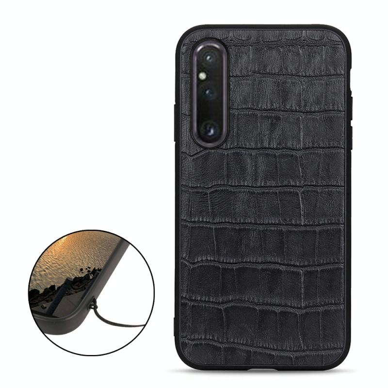 Θήκη τηλεφώνου από γνήσιο δέρμα με υφή κροκόδειλου για Sony Xperia 1 V (Μαύρο)