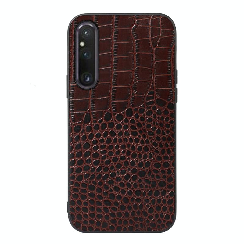 Θήκη τηλεφώνου από γνήσιο δέρμα με υφή κροκόδειλου για Sony Xperia 1 V (Καφέ)