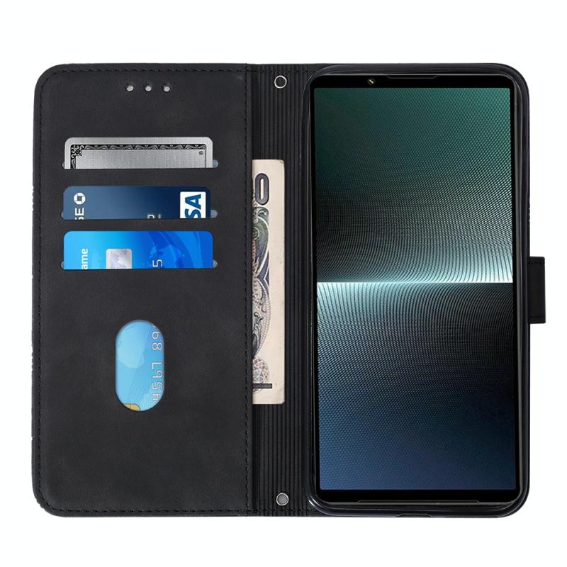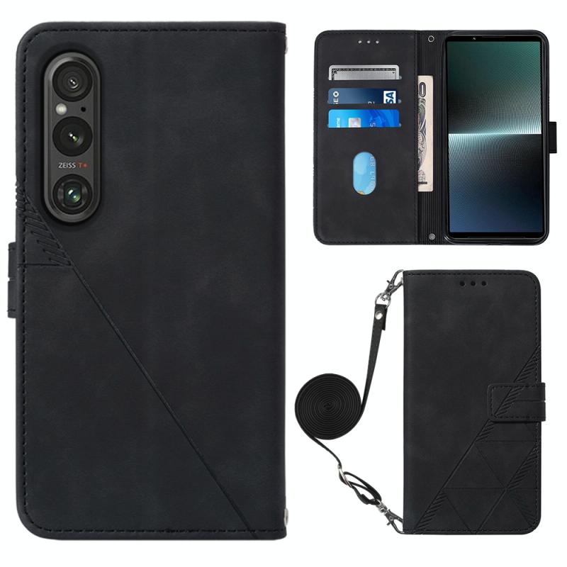 Θήκη τηλεφώνου δερμάτινη, τύπου flip, με ανάγλυφο 3D για Sony Xperia 1 V, σε στυλ crossbody (Καφέ)