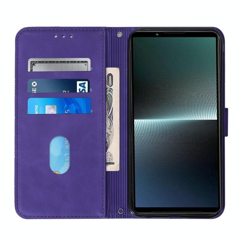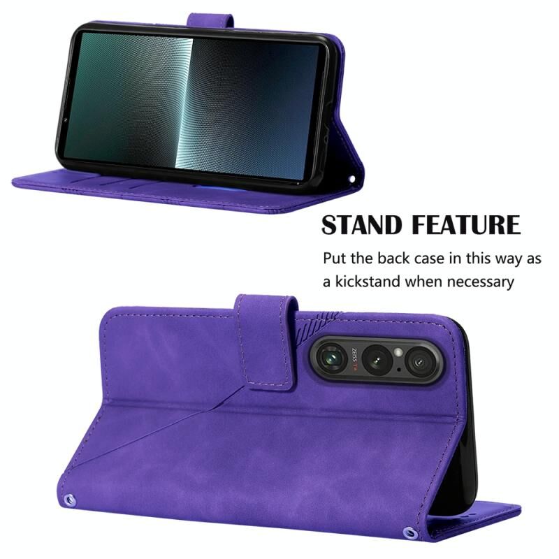 Θήκη τηλεφώνου δερμάτινη, τύπου flip, με ανάγλυφο 3D για Sony Xperia 1 V, σε στυλ crossbody (Καφέ)