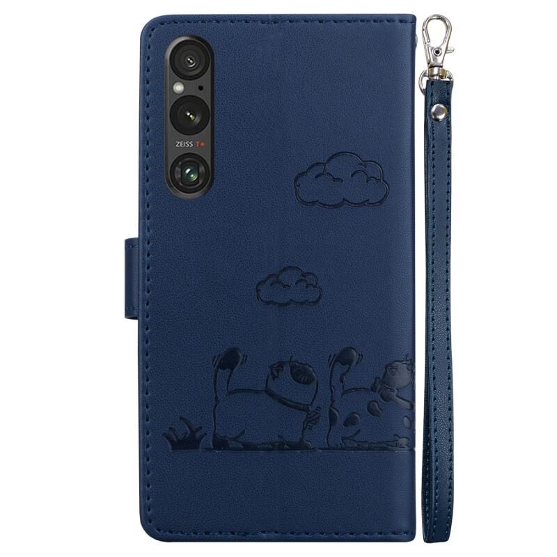 Θήκη τηλεφώνου από δέρμα με τεχνολογία RFID για Sony Xperia 1 V (Χρυσό Ρόδινο) με χαριτωμένες γάτες.