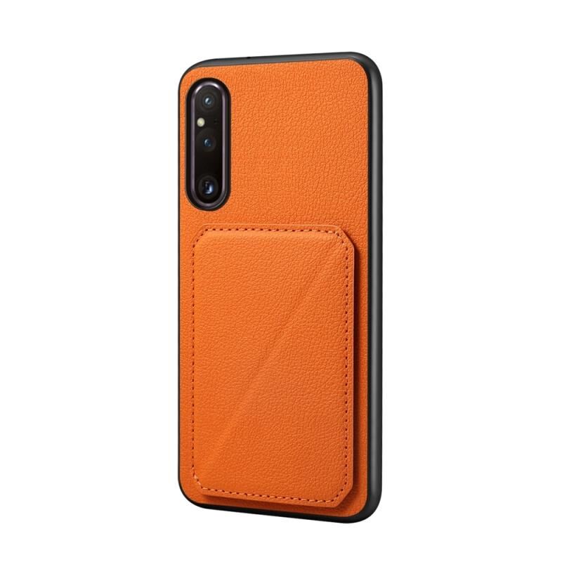 Για Sony Xperia 1 V D04 Calf Υφή Διπλή κάρτα Slot κάτοχος τηλέφωνο υπόθεση (πορτοκαλί)