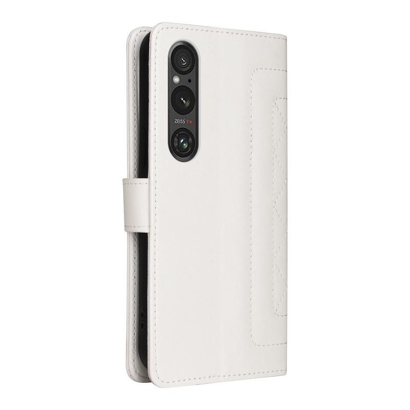 For Sony Xperia 1 V Diamond Lattice Leather Flip Phone Case(White)