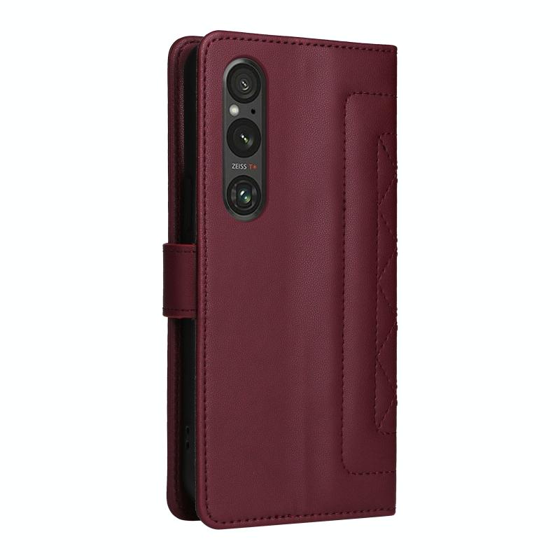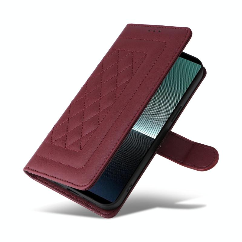 For Sony Xperia 1 V Diamond Lattice Leather Flip Phone Case(Wine Red)
