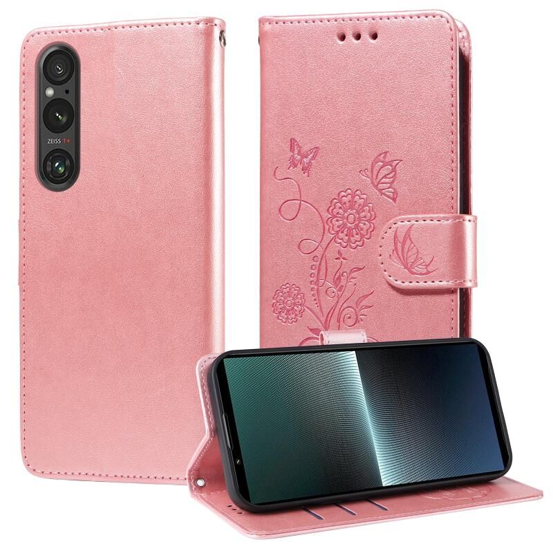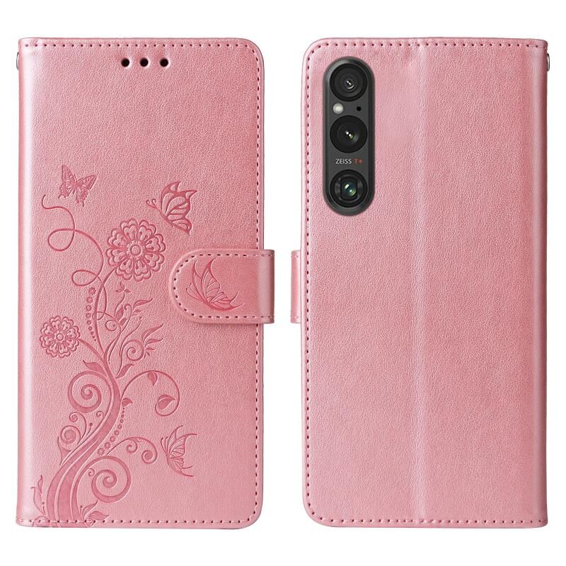 Θήκη τηλεφώνου δερμάτινη με ανάγλυφα λουλούδια πεταλούδας για Sony Xperia 1 V (Μωβ)