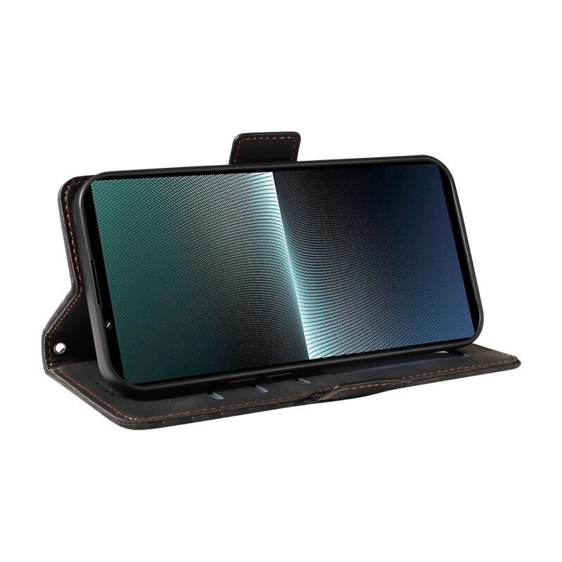 Για το Sony Xperia 1 V ανάγλυφο ρόμβο αστερόεσσα δερμάτινη θήκη τηλεφώνου (Μαύρο)
