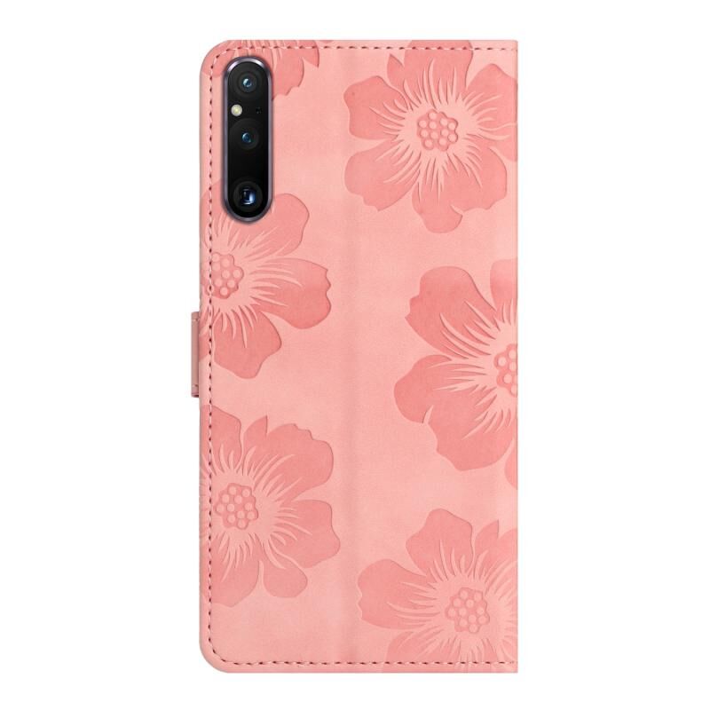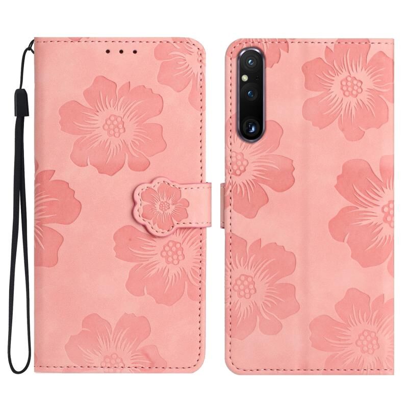 Για Sony Xperia 1 V λουλούδι ανάγλυφο μοτίβο δερμάτινη θήκη τηλεφώνου (ροζ)