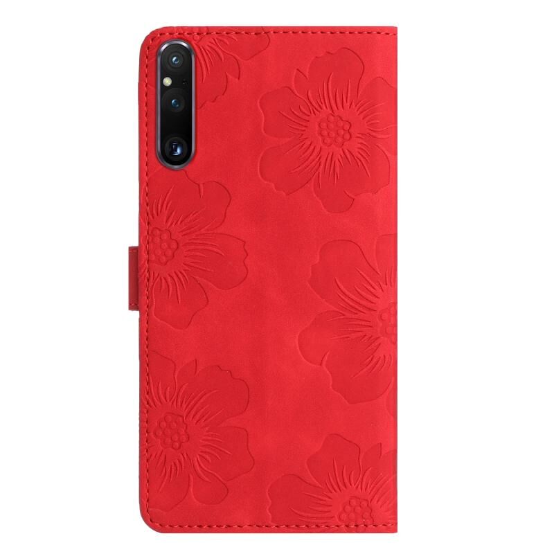 Για Sony Xperia 1 V λουλούδι ανάγλυφο μοτίβο δερμάτινη θήκη τηλεφώνου (κόκκινο)