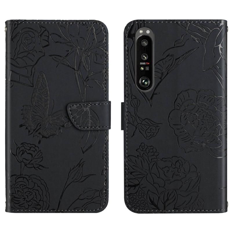 Θήκη τηλεφώνου από δέρμα με ανάγλυφο σχέδιο πεταλούδας, τύπου flip, για Sony Xperia 1 V HT03 (Μωβ)