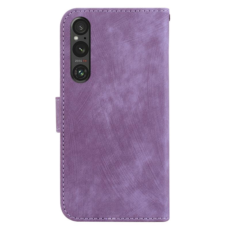 For Sony Xperia 1 V Little Tiger Embossed Leather Phone Case(Purple)