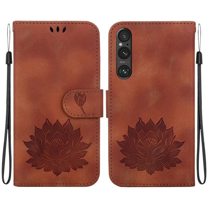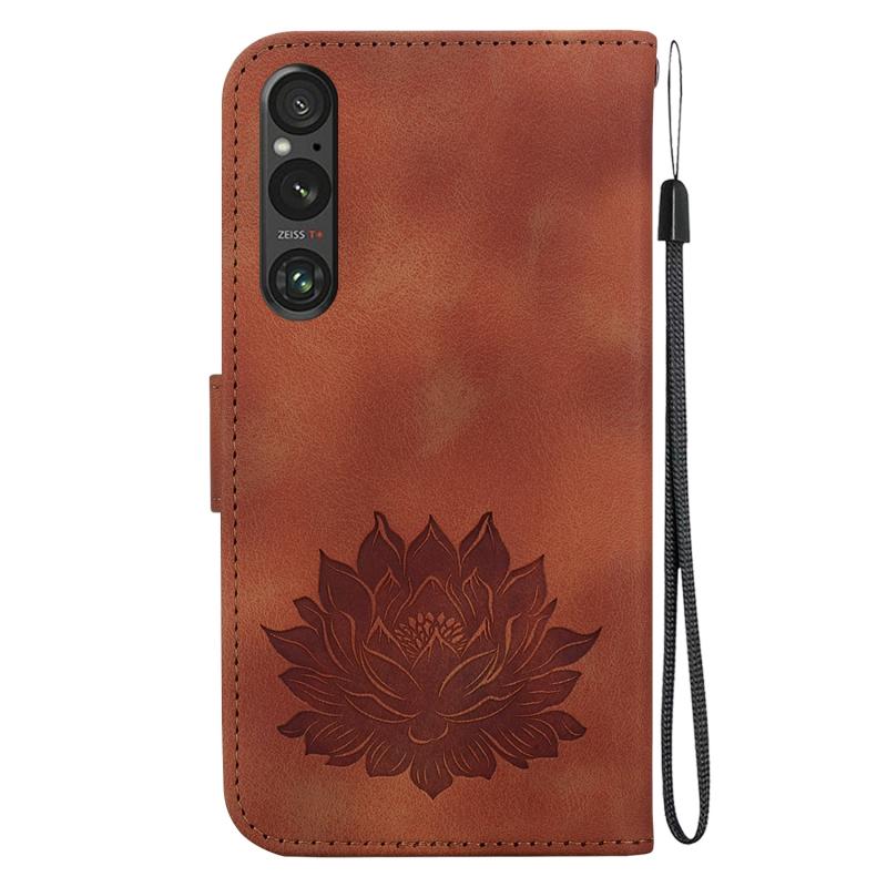 For Sony Xperia 1 V Lotus Embossed Leather Phone Case(Brown)