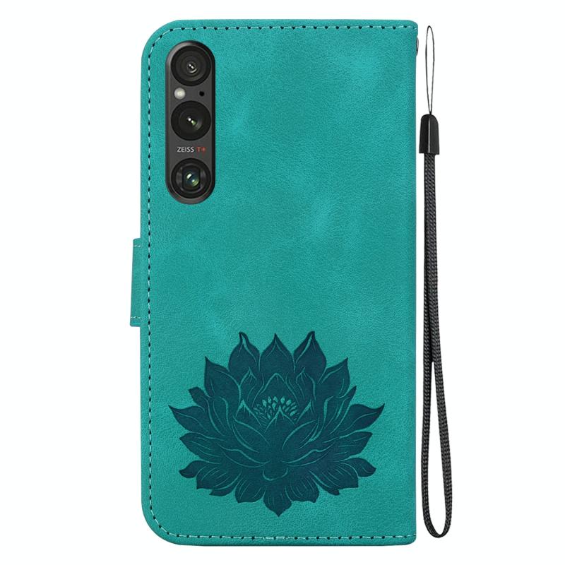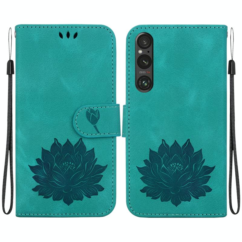 For Sony Xperia 1 V Lotus Embossed Leather Phone Case(Green)