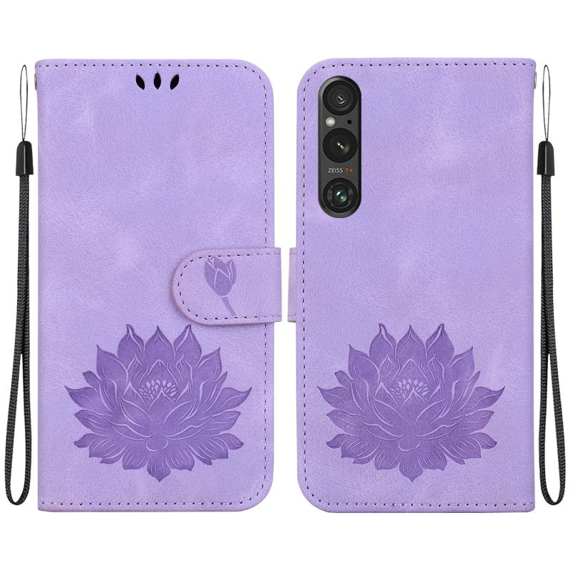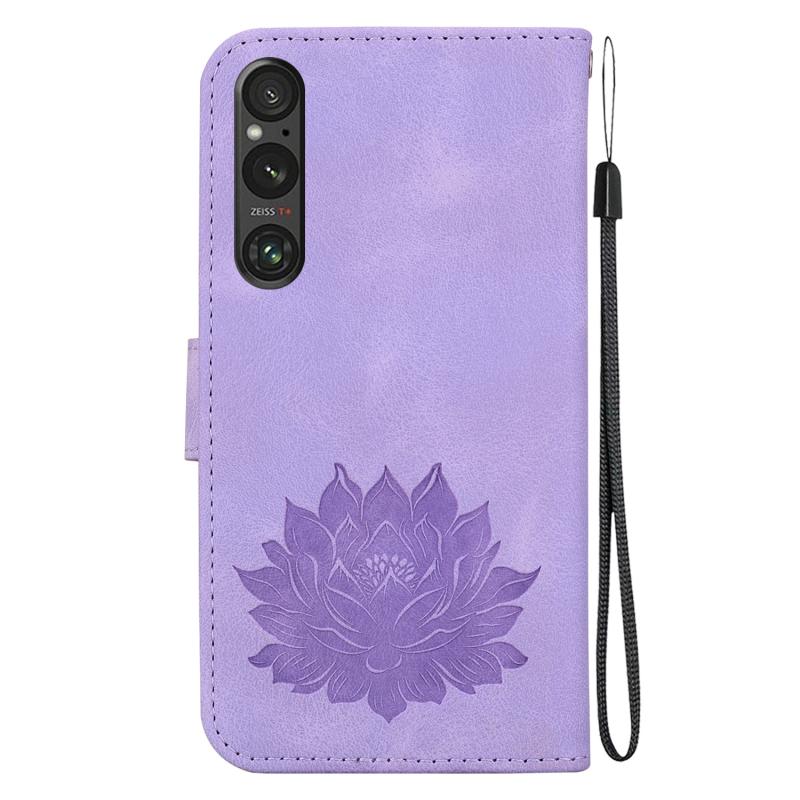 For Sony Xperia 1 V Lotus Embossed Leather Phone Case(Purple)