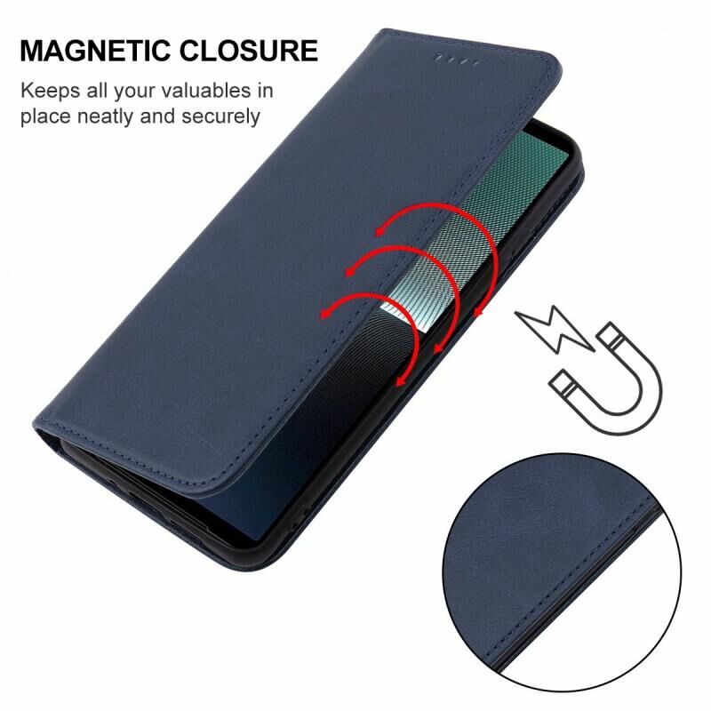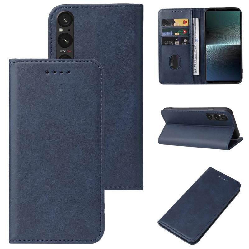 Για Sony Xperia 1 V Μαγνητικό κλείσιμο δερμάτινη θήκη τηλεφώνου (μπλε)