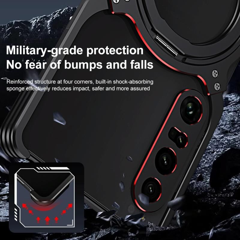 Θήκη τηλεφώνου από μέταλλο για Sony Xperia 1 V με μηχανικό βραχίονα, χωρίς πλαίσιο και με υποστήριξη MagSafe (Μαύρο Κόκκινο)