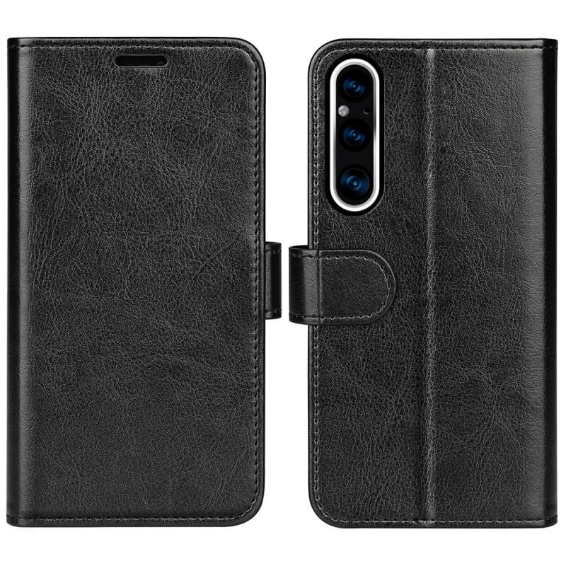 Για Sony Xperia 1 V R64 Υφή οριζόντια Flip δερμάτινη θήκη τηλεφώνου (μαύρο)