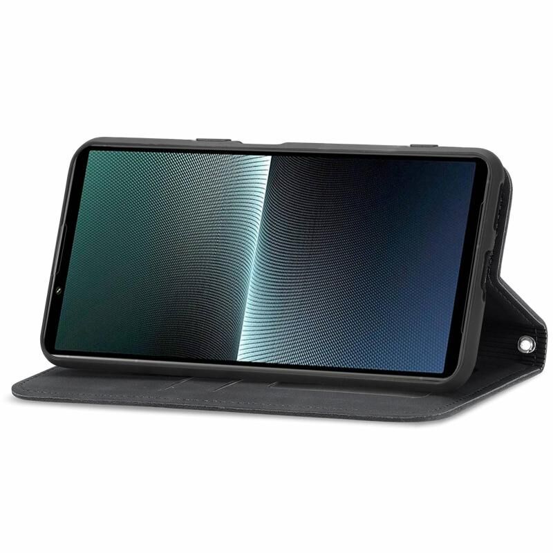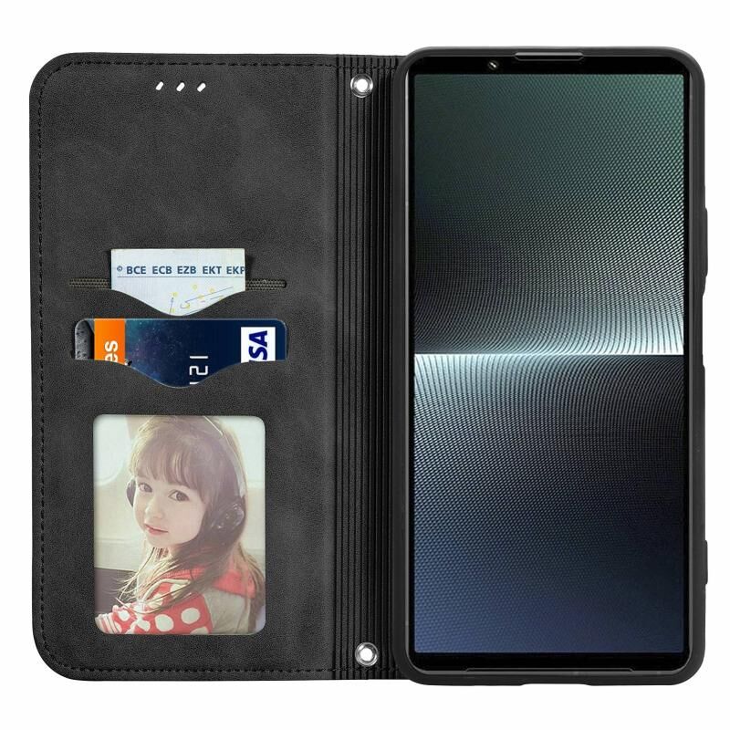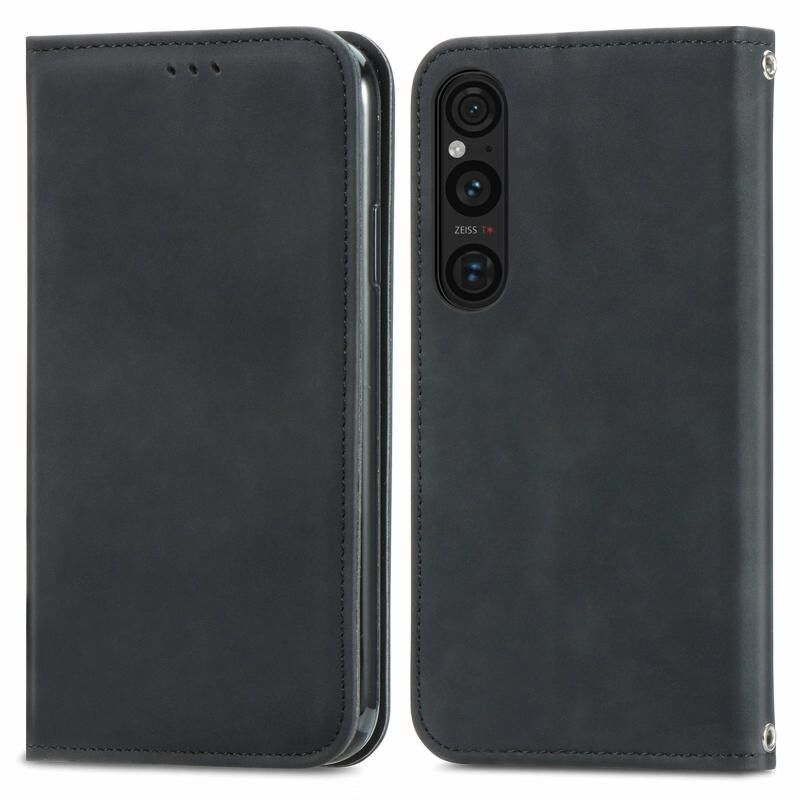 Για το Sony Xperia 1 V Retro δέρμα αίσθηση μαγνητική Flip δέρμα τηλέφωνο υπόθεση (μαύρο)