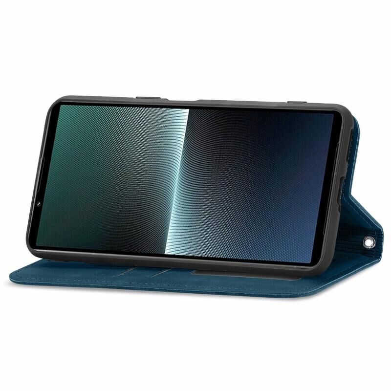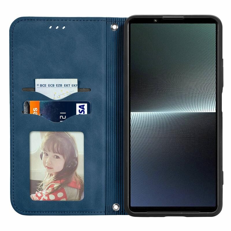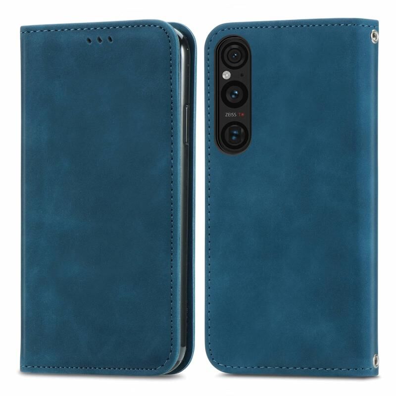Για το Sony Xperia 1 V Retro δέρμα αίσθηση μαγνητική Flip δέρμα τηλέφωνο υπόθεση (μπλε)