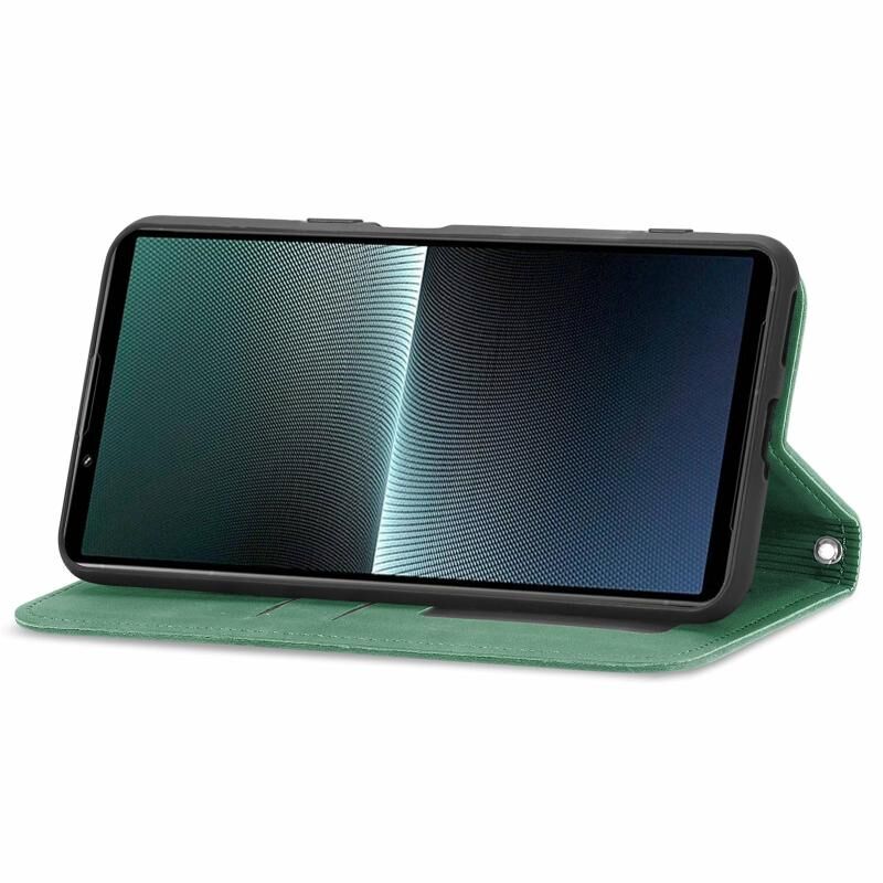 Για το Sony Xperia 1 V Retro δέρμα αίσθηση μαγνητική Flip δέρμα τηλέφωνο υπόθεση (πράσινο)