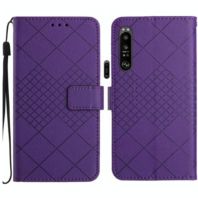 Για Sony Xperia 1 V Rhombic Grid Texture Δερμάτινη θήκη τηλεφώνου (μωβ)