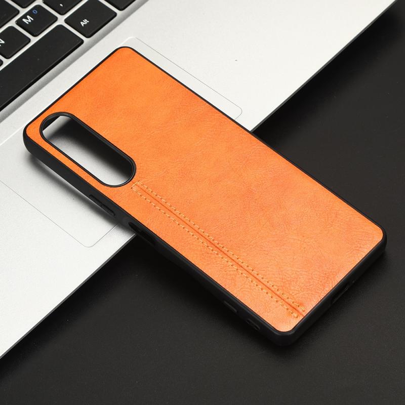 For Sony Xperia 1 V Sewing Cow Pattern Skin PC + PU + TPU Phone Case(Orange)