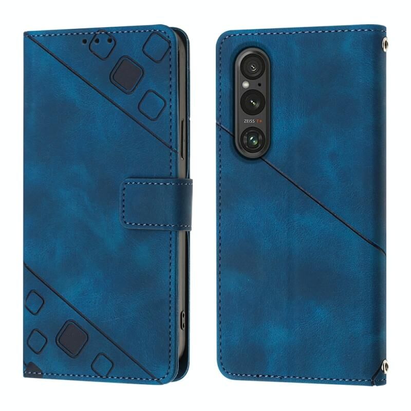 Για Sony Xperia 1 V Skin-feel ανάγλυφη δερμάτινη θήκη τηλεφώνου (μπλε)