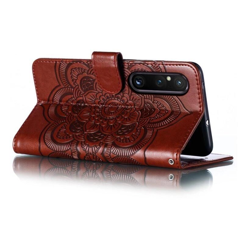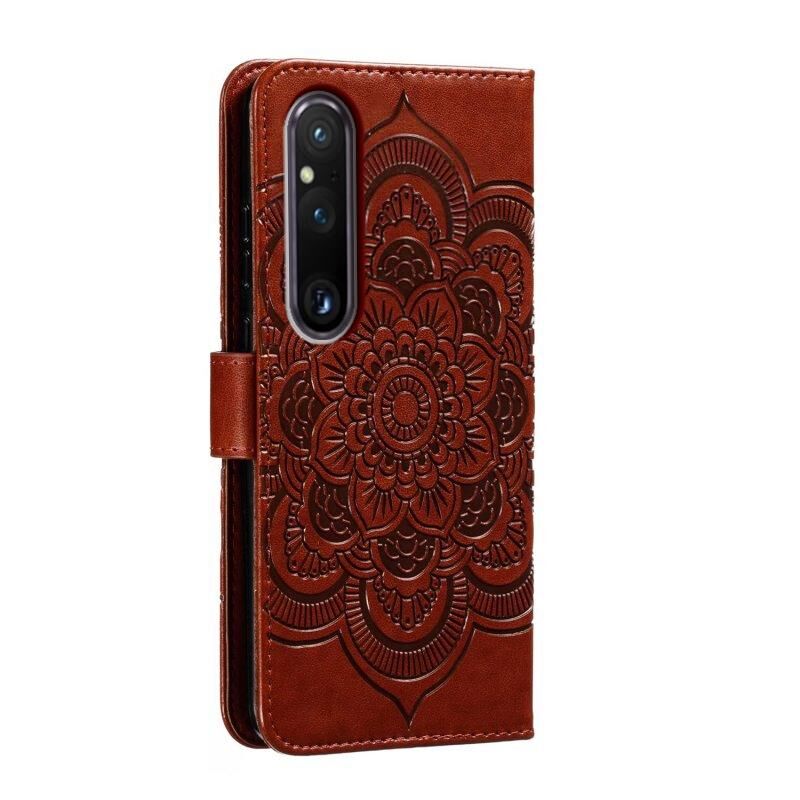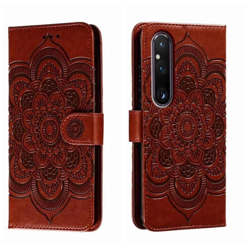 Για Sony Xperia 1 V Sun Mandala ανάγλυφο μοτίβο τηλέφωνο δερμάτινη θήκη (καφέ)