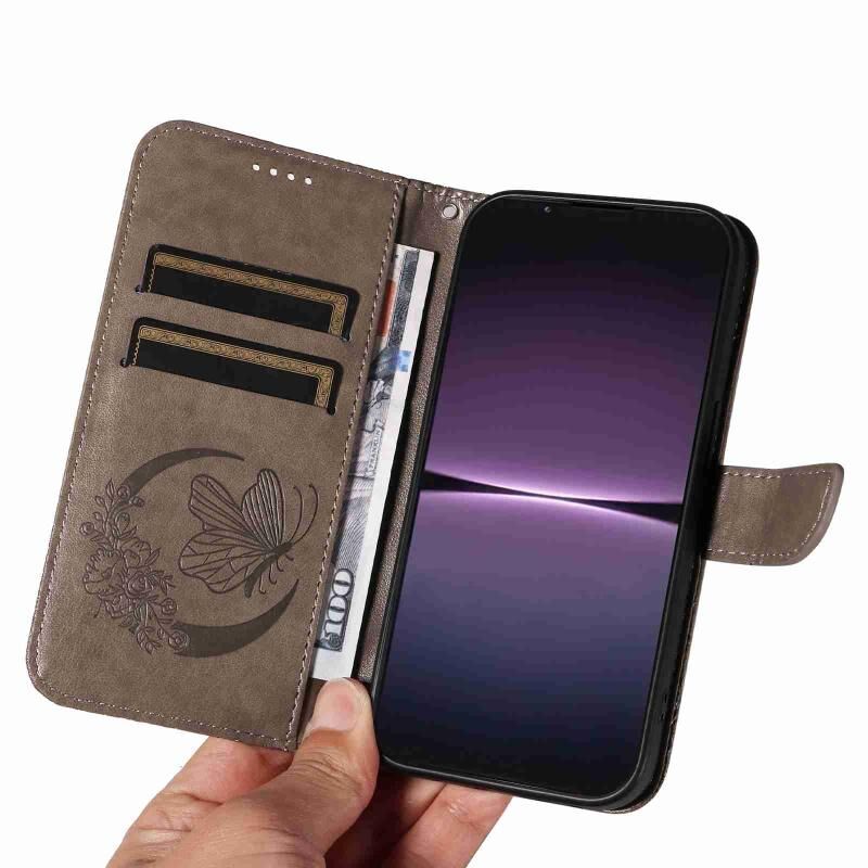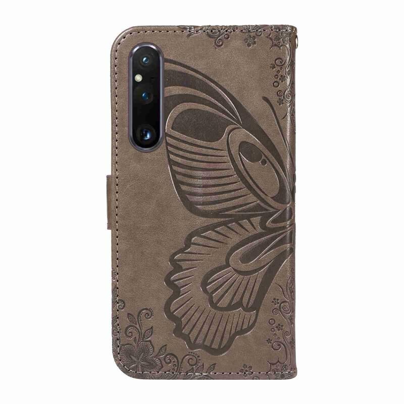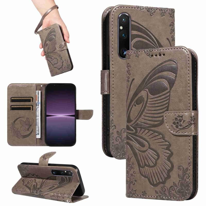 Θήκη τηλεφώνου από δέρμα με ανάγλυφο σχέδιο πεταλούδας Swallowtail για Sony Xperia 1 V (Μπλε)