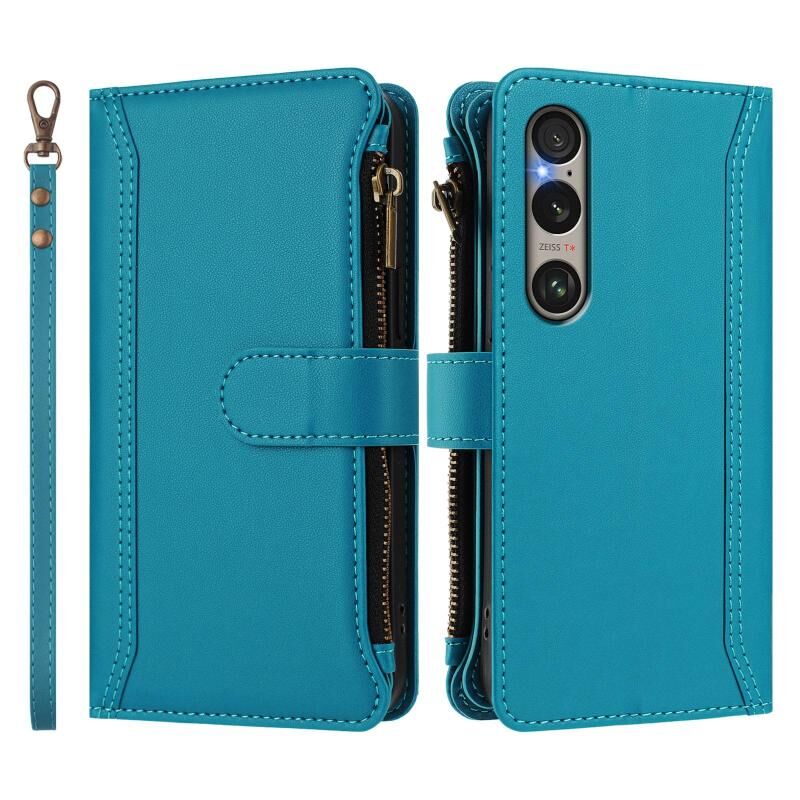 For Sony Xperia 1 VI 2024 Magnetic Closure 9 Card Slots Zipper Leather Case with Hand Strap(Turquoise)