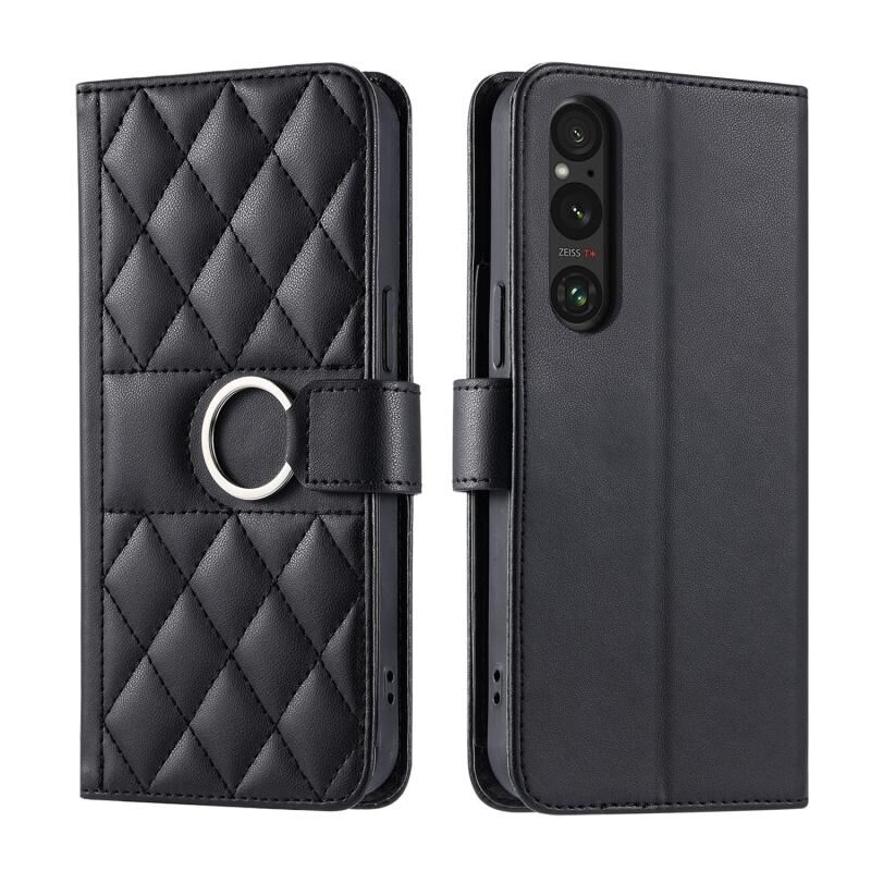 For Sony Xperia 1 VI 2024 Ring Buckle Rhombic Leather Phone Case(Black)