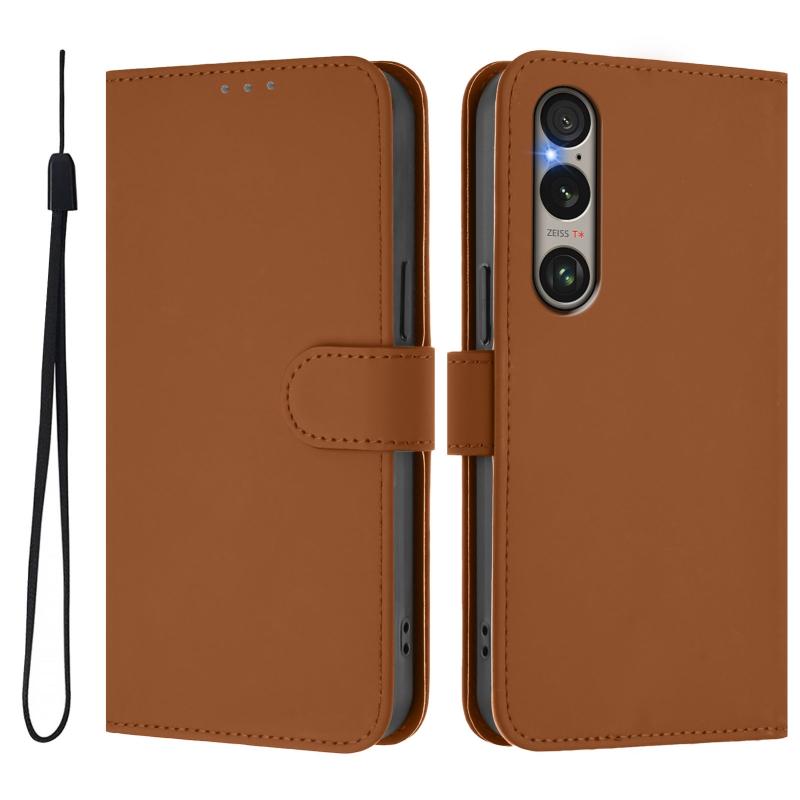 For Sony Xperia 1 VI 2024 Skin Feel Solid Color Leather Phone Case with Lanyard(Brown)