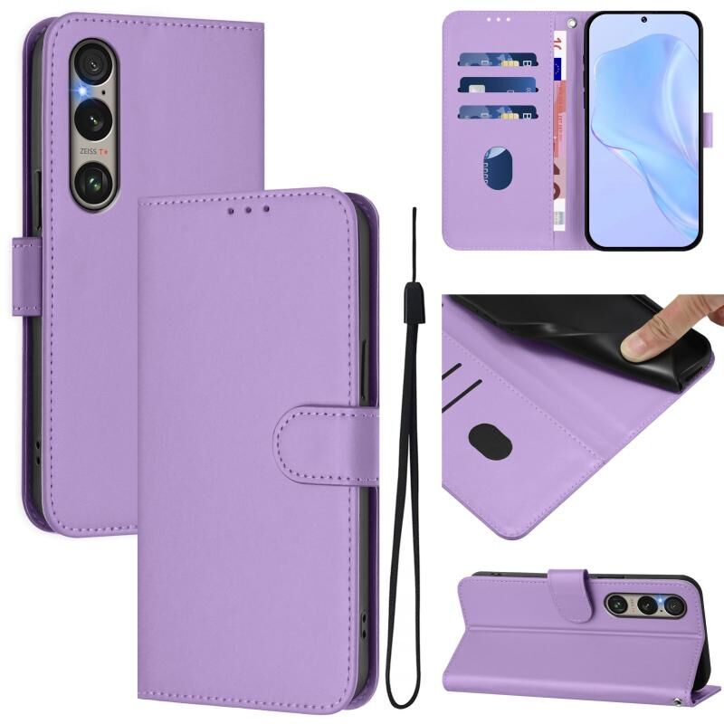 For Sony Xperia 1 VI 2024 Skin Feel Solid Color Leather Phone Case with Lanyard(Lavender Purple)
