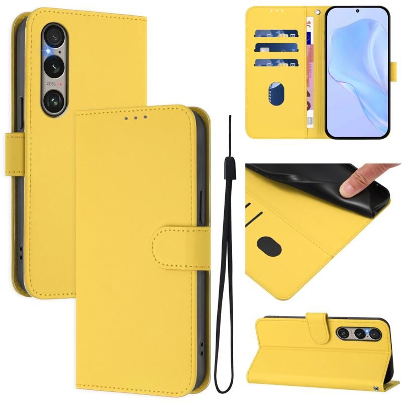 For Sony Xperia 1 VI 2024 Skin Feel Solid Color Leather Phone Case with Lanyard(Lemon Yellow)