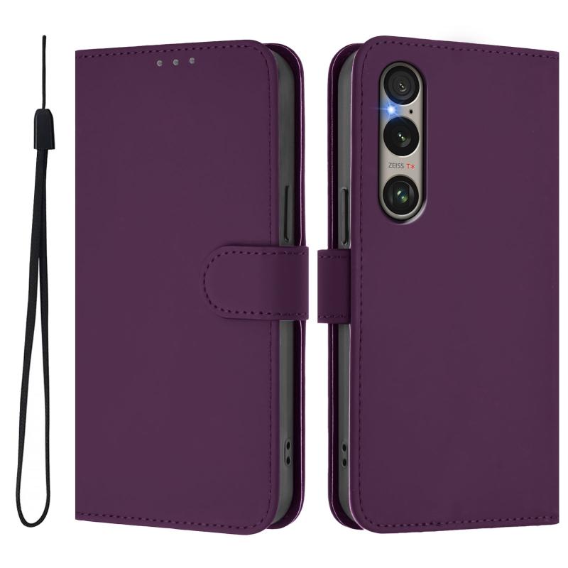 For Sony Xperia 1 VI 2024 Skin Feel Solid Color Leather Phone Case with Lanyard(Violet)