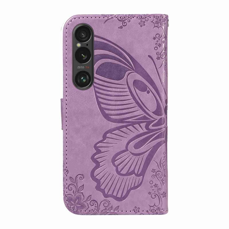 Θήκη τηλεφώνου από δέρμα με ανάγλυφο σχέδιο πεταλούδας Swallowtail για Sony Xperia 1 VI 2024 (Μπλε)