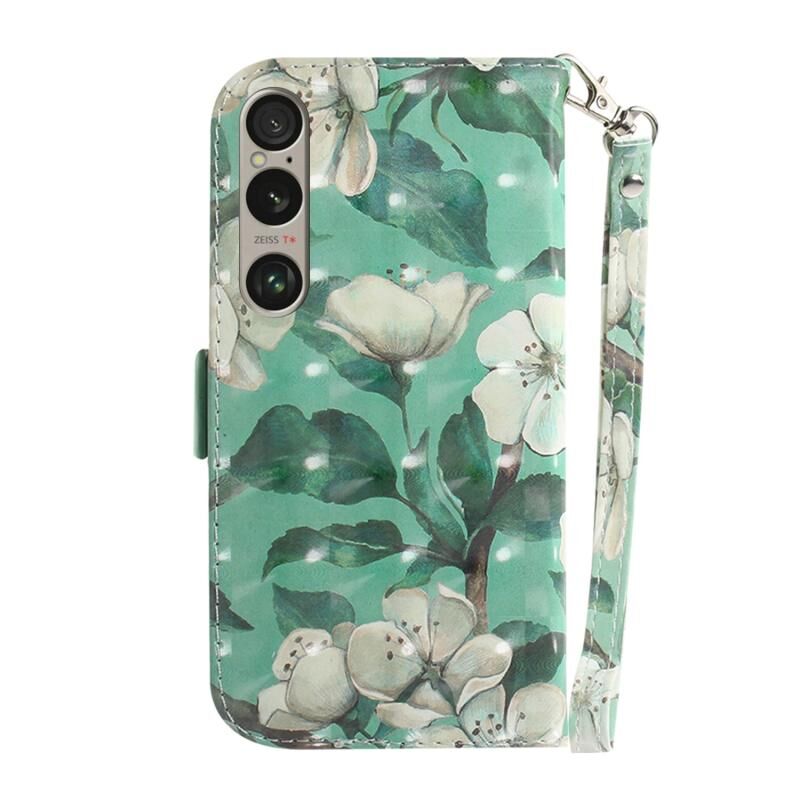 Θήκη τηλεφώνου δέρμα κατακόρυφης αναδίπλωσης 3D με έγχρωμα σχέδια για Sony Xperia 1 VI (Ακουαρέλα Λουλούδι)