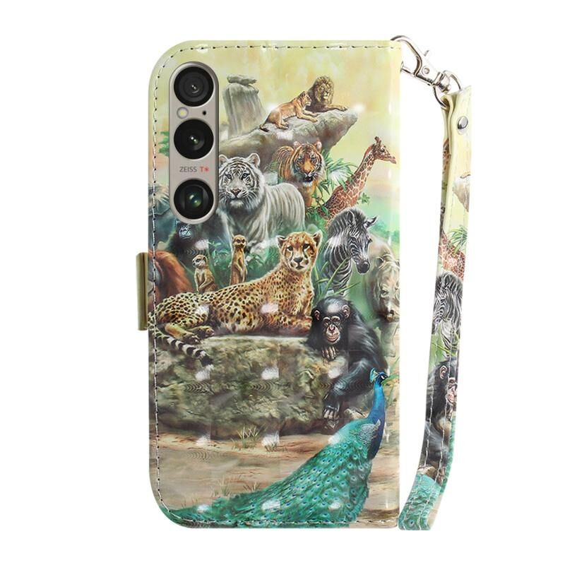 Θήκη τηλεφώνου δέρμα κατακόρυφης αναδίπλωσης με έγχρωμα τρισδιάστατα σχέδια για Sony Xperia 1 VI (Ζωολογικός κήπος)