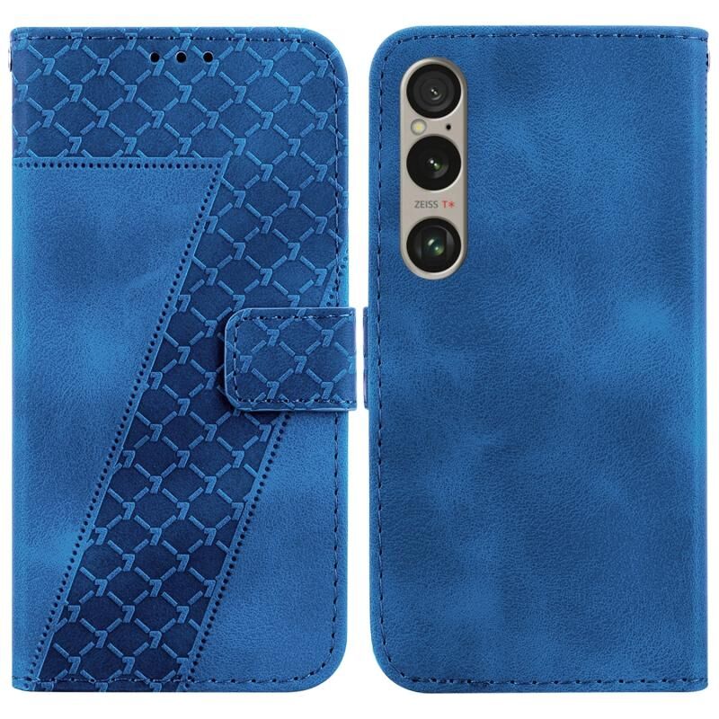 Για Sony Xperia 1 VI 7-σχήμα ανάγλυφη δερμάτινη θήκη τηλεφώνου (μπλε)