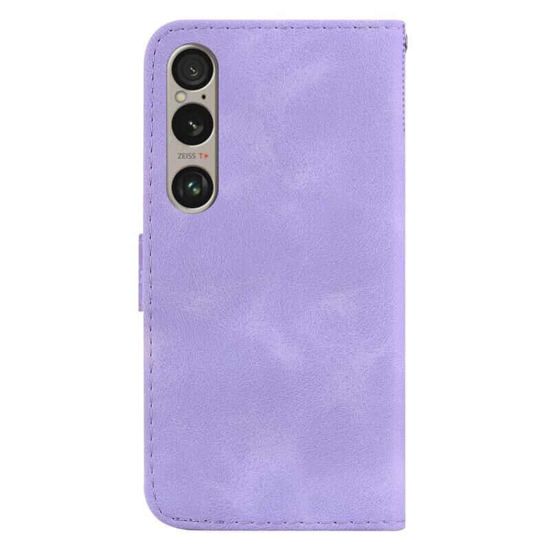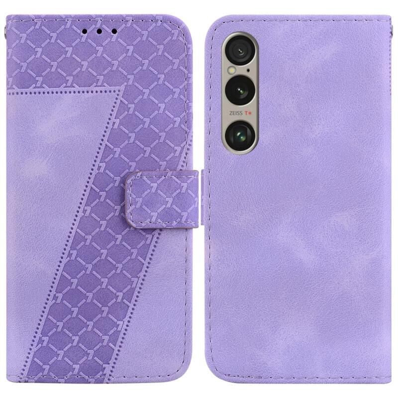Για Sony Xperia 1 VI 7-σχήμα ανάγλυφη δερμάτινη θήκη τηλεφώνου (μωβ)